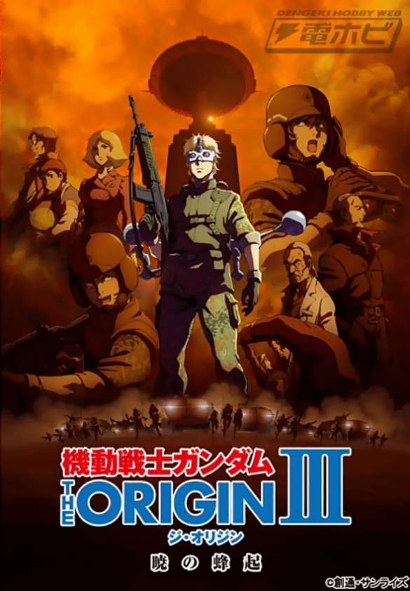 O anime Mobile Suit Gundam: The Origin é uma adaptação do manga de mesmo nome, que se inspira na primeira série de anime Gundam (de Yoshiyuki Tomino). O manga de Yoshikazu Yasuhiko, foi lançado na edição inalgural da Monthly Gundam Ace (da editora Kadokawa Shoten) em 2001.