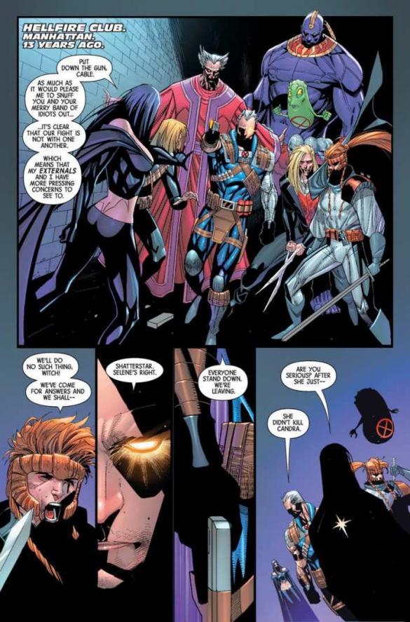 Segunda parte do arco “THE Newer mutants“. Alguém está eliminando os membros de um grupo ancestral de mutantes, chamado os Externals…, Mas, a equipe de Novos Mutantes de Cable, está viajando através do tempo para achar o assassino, de uma vez por todas. E sua investigação os leva direto para a mestra vampírica, Selene!