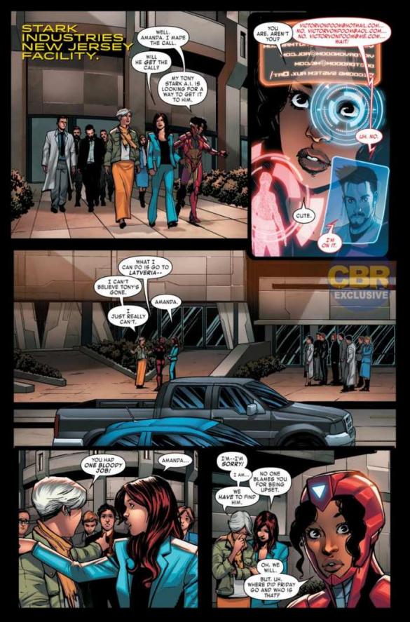 Segunda parte do arco “THE SEARCH FOR TONY STARK“. A busca por Tony Stark continua, enquanto algumas inesperadas de seu presente, passado e futuro, se unem para ajudar na busca.