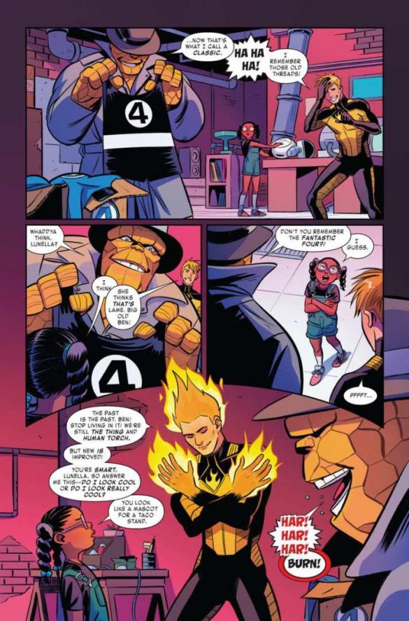 Mas, sem a Primeira Família, do Universo Marvel, por perto para responder o chamado. Quem se oferecerá para solucionar o impossível? Lunella Lafayette, é ela que irá! Sem Devil Dinosaur ao seu lado, Lunella deverá unir forças com com alguns novos amigos, que perderam seus parceiros também.
