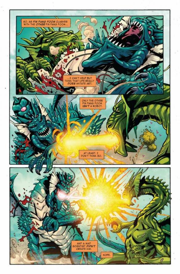 Ligação com o VENOMVERSE. Segunda parte do arco “AND LO, THERE CAME A POISON“. Kid Kaiju não tem ideia do que é capaz. E agora ele acidentalmente evocou um POISON FIN FANG FOOM, de outra dimensão. Como Kid Kaiju pode se tornar um herói, se ele não consegue controlar seus poderes?