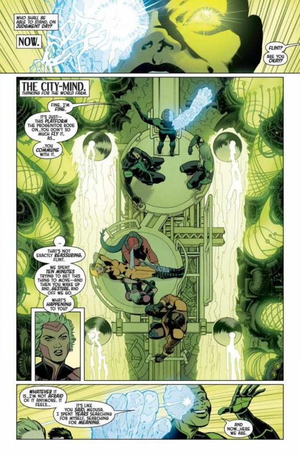 Terceira parte do arco “FIRE FROM HEAVEN“. Os Royals ficam cara a cara com a Prima Materia — a Terrigen original! Mas, conseguirão traze-la de volta à Terra? E isso salvará a raça Inumana — ou selará seu destino?