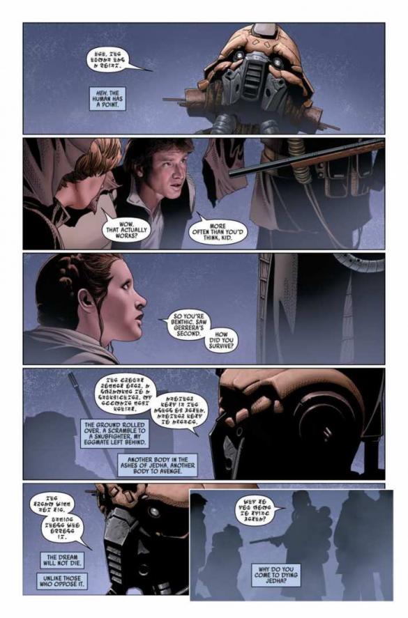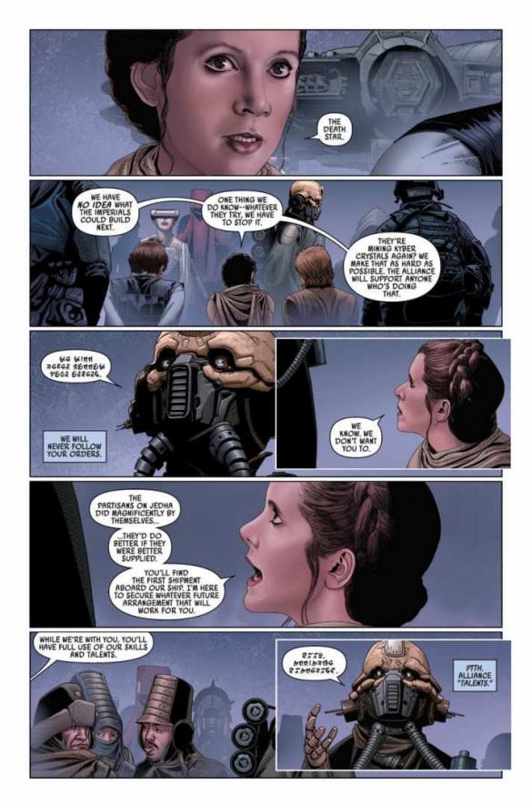 THE ASHES OF JEDHA! A Aliança Rebelde volta sua atenção para o desolado planeta, Jedha! Já tendo sido um local de grande significado para os Jedi. Jedha foi deixada em ruinas, quando a Estrela da Morte aniquilou a Cidade Sagrada. Agora, o novo escritor da série Kieron Gillen se junta ao artista Salvador Larroca, para trazer Luke, Leia, Han e companhia aos restos desta trágica vítima da fúria do Império!