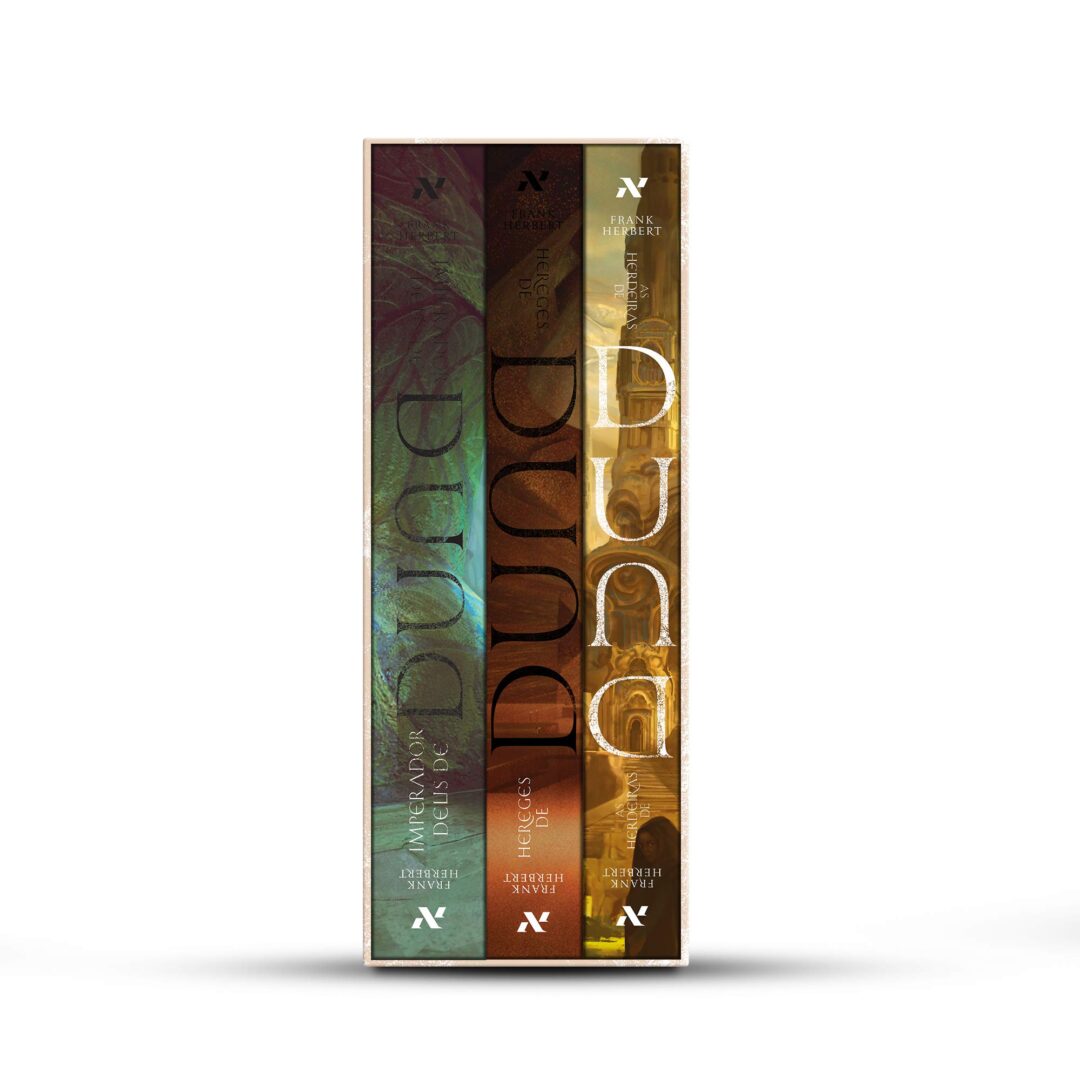 1.  – O Box Duna: primeira trilogia é formado pelos livros iniciais da saga – Duna, Messias de Duna e Filhos de Duna –, acompanhando a trajetória de Paul Atreides e sua família no planeta Arrakis.