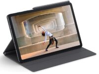 A capa protetora Book Cover que acompanha o Galaxy Tab S6 Lite é moderna, tem estilo diferenciado e é muito prática. Sua aba com dobra e fechamento magnético, mantém seu tablet sempre protegido. Possui ainda um compartimento para que a caneta S Pen não fique para trás.